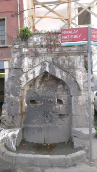 Hamam şimdilerde, belki de mal sahibi olan kişi tarafından akü şatış yeri olarak kullanılıyordu. Peki ya çeşme? Onu da İSKİ’nin 2006’da 3 cilt olarak çıkardığıTarihi Çeşmeler Külliyatı’nda bulacağımı ümit etmiştim. Ama sekiz yüze yakın tespit edilen, envanteri çıkarılan çeşmeler arasında bu çeşme maalesef yoktu. Tekrar tekrar baktım ama yoktu. Öyle ya, belki de bir çeşme eksik olsa ne olur; bir hamam, bir sebil, bir mektep, bir tekke… Şu sıra bir restorasyon mevsimi var; her yerde –layıkıyla yapıldığına inanıyoruz ya da inanmak istiyoruz- bu eserler hem de ara sokaklarda, kuytu köşelerde olmadığı hâlde neden atlanmıştır? Hâlâ anlayabilmiş değilim.