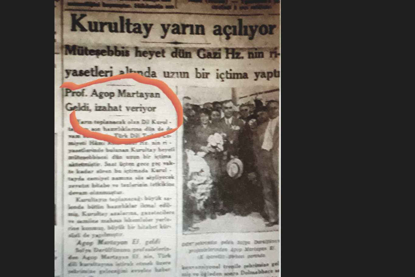 Dil Kurultayı’na yakın günlerde Ermenice Arevelek gazetesinde Türk dili üzerine bir yazı yayınlatır. Bu yazı Türkçeye çevrilmek üzere Cumhurbaşkanı’na ulaştırılır ve işte davet süreci de böylece başlar. Mezkûr yazının kaleme alınmasının zamanlaması ayrı bir mesele, onun tercüme edilip cumhurbaşkanına ulaştırılması apayrı bir hususdur.