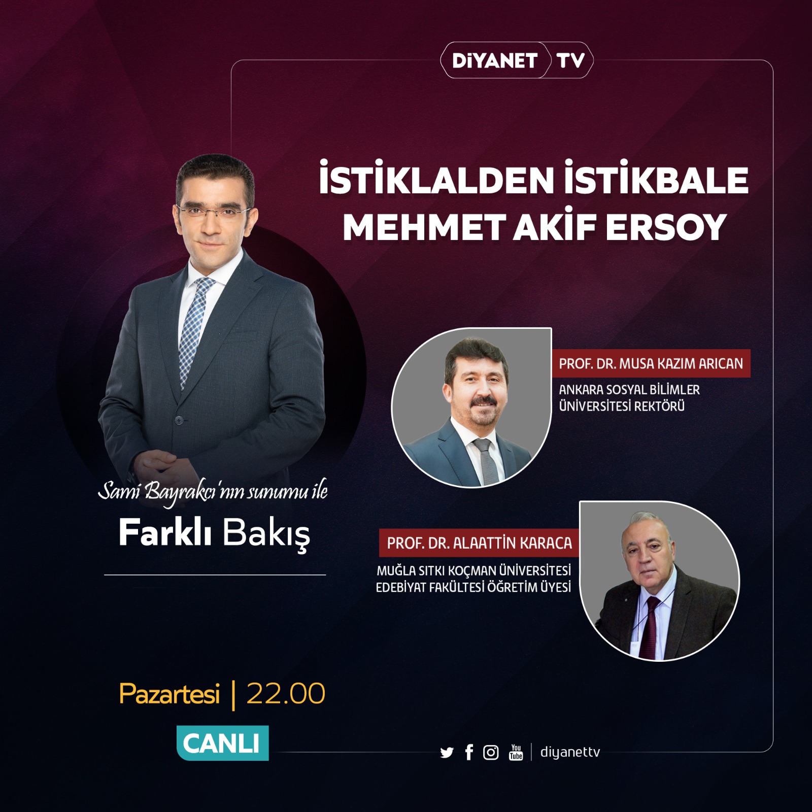 27 Aralık 2021 tarihinde saat: 22.00 de başlayacak programda “İstiklâlden İstikbâle Mehmet Âkif Ersoy” konuşulacak.
