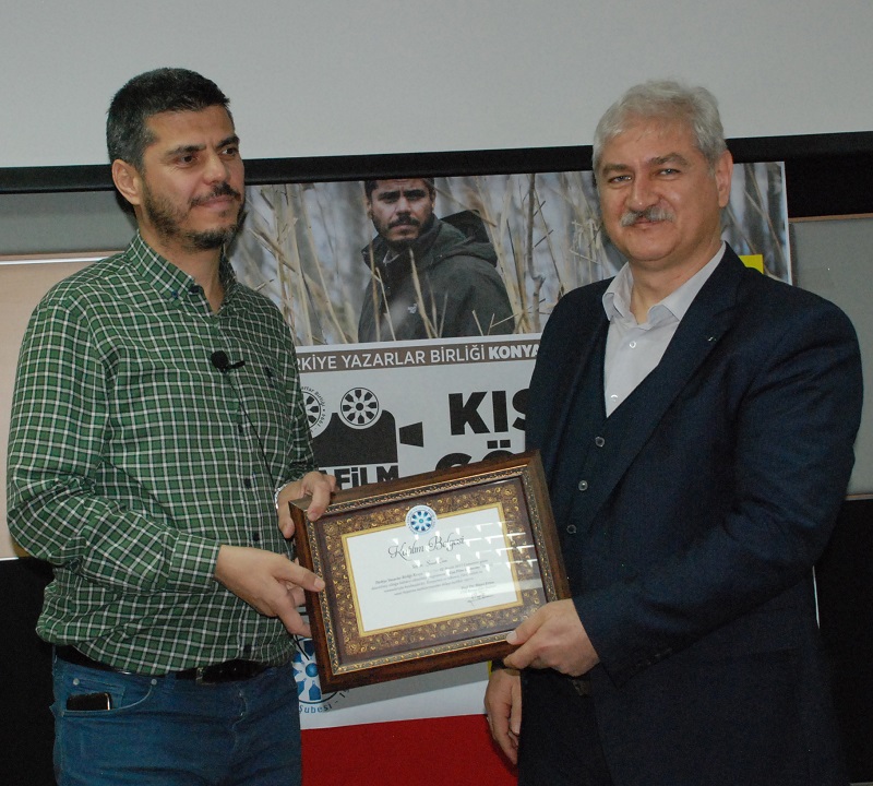 Kısa süren soru cevap faslının ardından 4 kısa film daha gösterildi. Programın sonunda Şenol Çöm’e TYB Konya Şubesi Başkanı Prof. Dr. Hayri Erten günün anısına bir plaket takdim ederken Sanatçı değerlerimize sahip çıkmamız gerektiğinin altını çizdi.