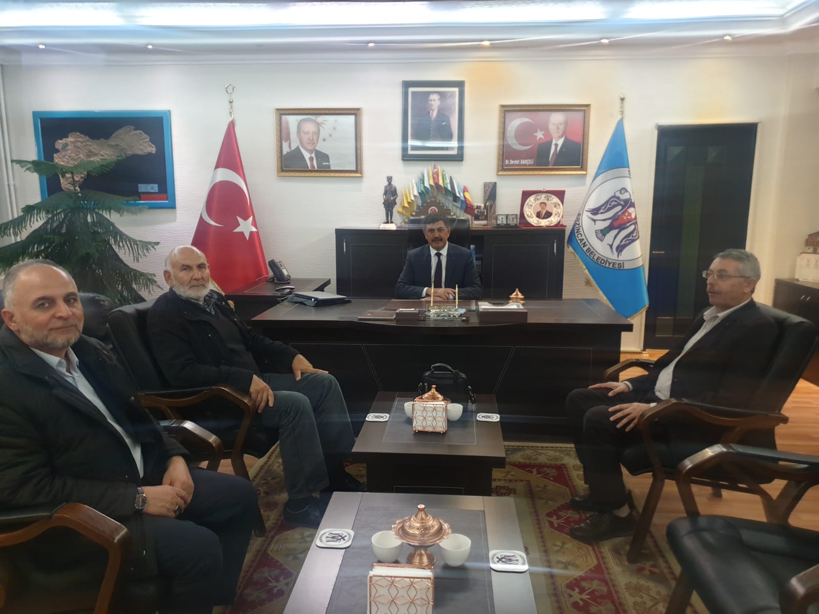 Türkiye Yazarlar Birliği Erzincan Şubesi Başkanı Halil İbrahim Özdemir, Erzincan Belediye Başkanı Bekir Aksun'u makamında ziyaret etti.