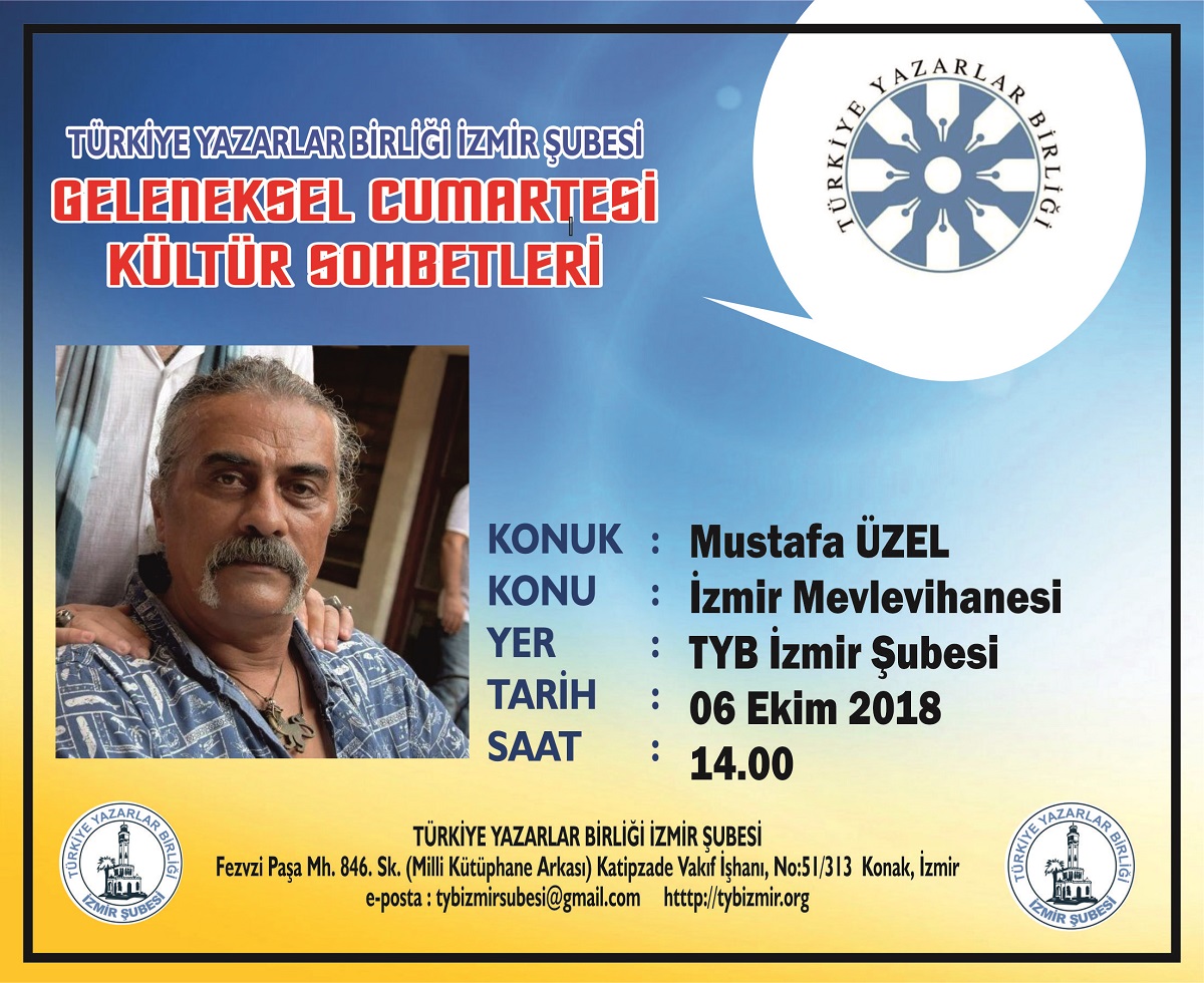 “İzmir Mevlevihanesi”nin konuşulacağı program 6 Ekim Cumartesi 14.00’te TYB İzmir Şubesinde yapılacak.