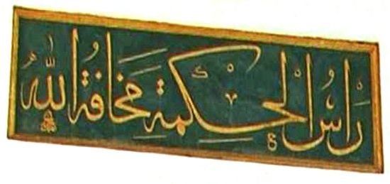Bu ikinci kapının tam üstünde ve tavana yakın, Sultan III. Ahmet ‘in kendi el yazısı ve celi sülus hatla “Resul-ü hikmet-i mahafetulah” levhası vardır. Kemerin iki tarafında, dört satır halinde talik hat ve yaldızla sağdan sola: