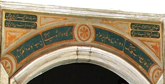 Mısraları yazılıdır. Tam kemer üzerinde yine aynı hat ve yaldız ile: