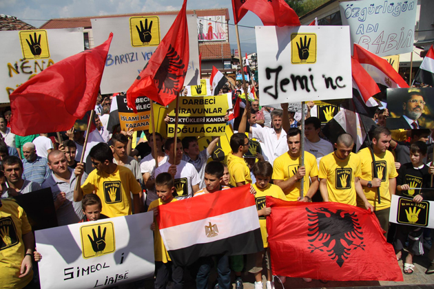 Mısır'daki Müslümanların darbeci ordu tarafından katledilmesine yönelik protesto gösterileri dalgası Balkanlar'a da yayıldı.